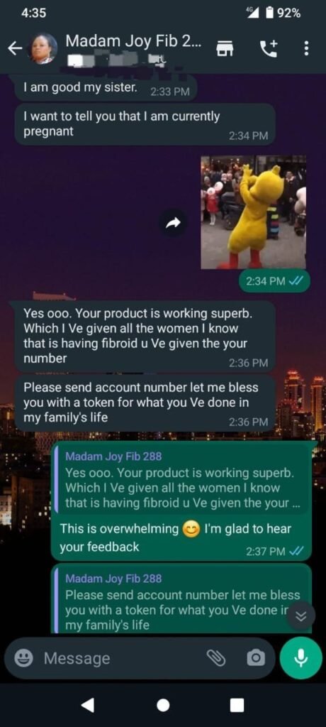 I’m Mrs. Blessing, and I want to share a story about my struggle with fibroids, which made it hard for me to become a mom. For four long years, I faced a lot of pain, heavy bleeding, and feeling really sad. Even the doctors couldn’t help much, and things seemed tough.