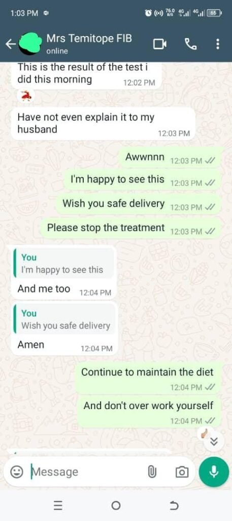 So, I ordered the herbal remedy, and at first, nothing much changed. But after 2 weeks, the pain got better, the bleeding wasn’t as bad, and I started to believe that things could get better. And then, something amazing happened—I found out I was going to have a baby! The doctors were surprised because the fibroid had gotten really tiny, making room for a new life.