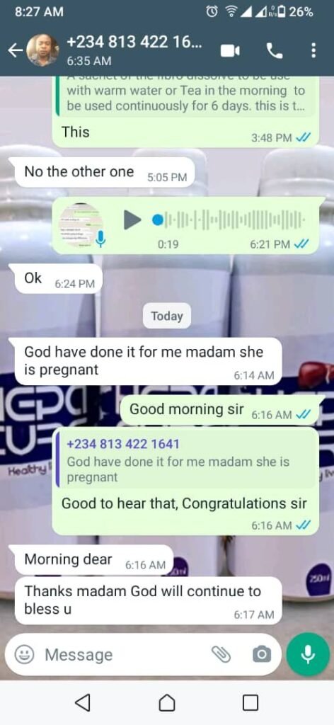 Stick with me as I will be revealing to you what no fibroid product has ever done before, not even surgery. So congratulate yourself if you find yourself reading this piece because you will be putting an end to all infertility issues in less time and I can assure you of CARRYING YOUR OWN BUNDLE OF JOY THIS YEAR